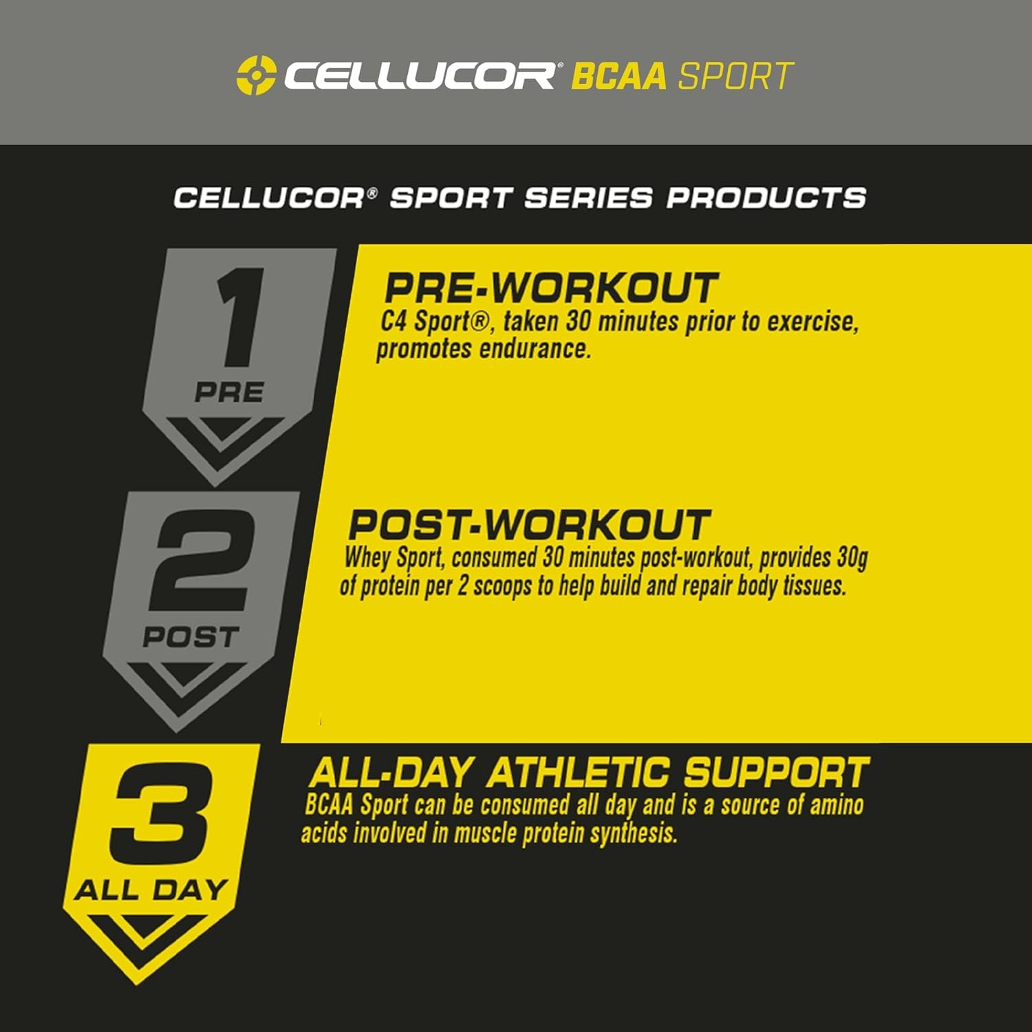 Leucine, Isoleucine, Valine – tre aminoacidet kryesore për rikuperim muskular. Pilot gjatë stërvitjes për të reduktuar lodhjen dhe mbrojtur masën muskulore.